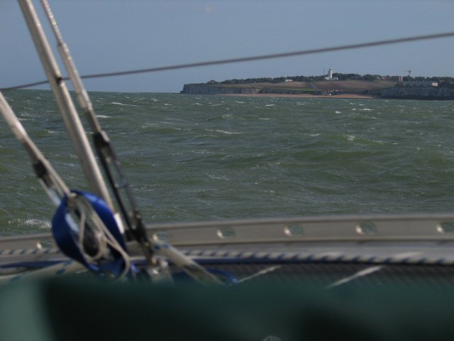 The rest of the trip was without drama but no less excitement. The wind strengthened, we had some squally weather and at one point two reefs in the main with a reduced head sail. There was a fair amount of shipping to avoid when crossing the southern approaches to the Thames estuary. By North Foreland (a few miles north of Ramsgate) we had a steady force six with a choppy sea but Gothik held her own and made light of it, tacking close hauled into a SSW'ly. The entrance to Ramsgate was a little tricky - my glasses were covered in salty spray and the sun was directly behind the features we were trying to identify - but we made it into the calmer water of the entrance without trouble and tied up alongside at around 1900.