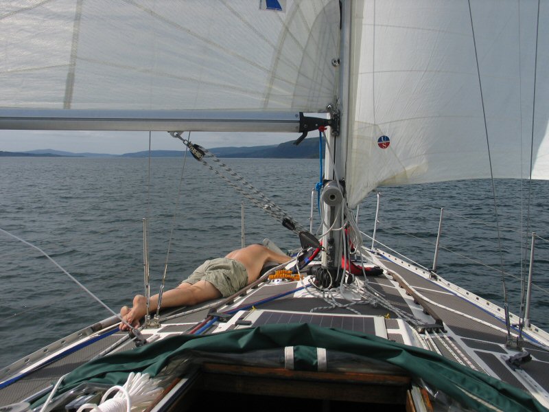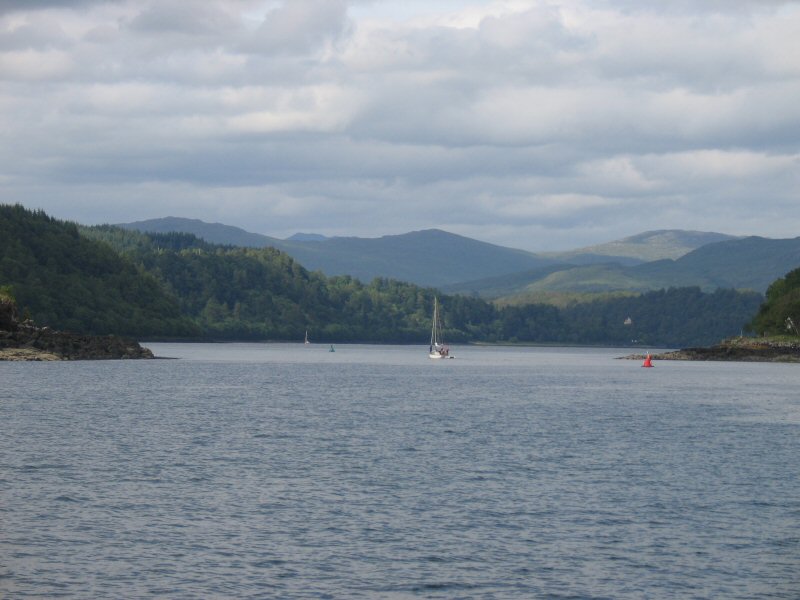 After a delayed start, up went the sails, off went the engine. We were sailing close hauled on a port tack but managed to make our mark, rounding a navigation buoy and into the Sound of Mull. There were certainly a lot of yachts around. This seems to be a popular area. I thought after our experience from the previous few days that we'd left most people in the Clyde. Oban reinforced that feeling since the marina was so small and full of boats 'in transit'. It wasn't like other marinas - few static boats, many Scandinavian boats - all preparing for a long trip.