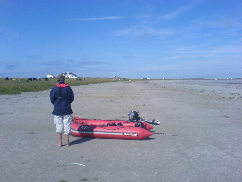 too long the dingy was unpacked, inflated, the motor mounted and we were