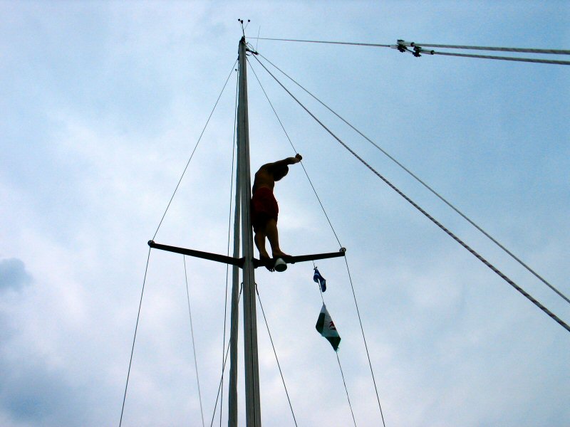 With no tide or wind to carry us away we let the anchor fall into 7m of