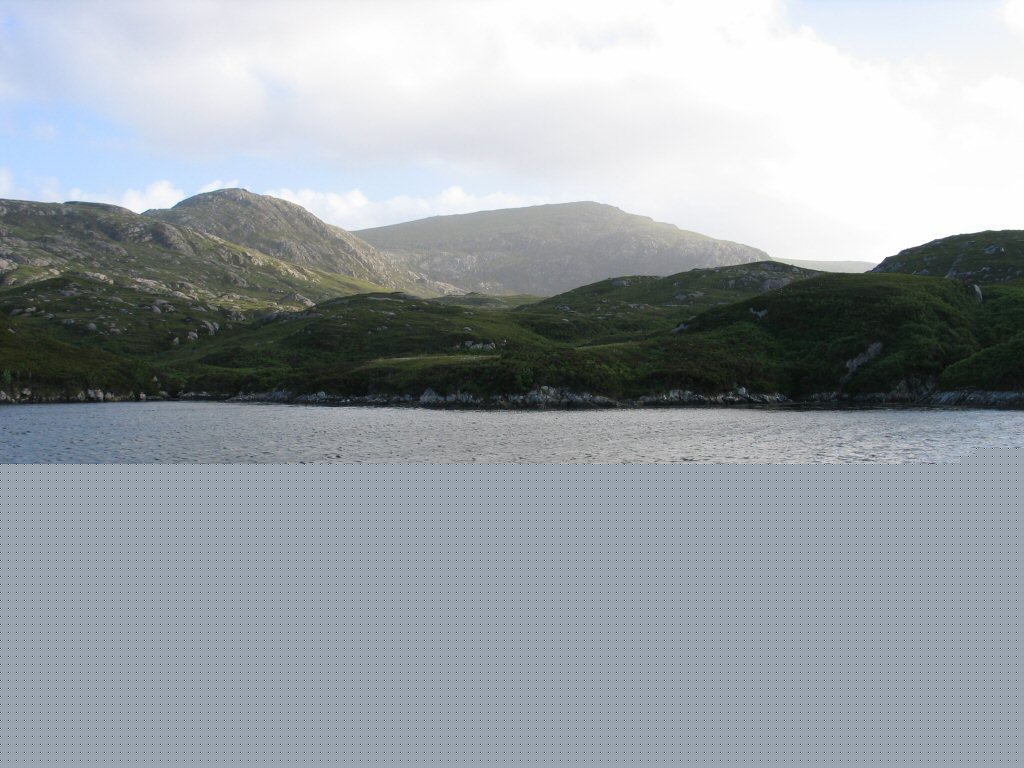 Despite being close hauled to the wind with two reefs in the main and the short seas slowing us down, we still managed to keep up an encouraging 5 knots. It had been cloudy most of the day but as we approached the entrance to Loch Skipport the rain started to come down in squalls. We made a series of tacks to take advantage of each change in the wind direction and slowly edged our way into the lee of the land. Here the sea was a little softer but very confused, coming from all directions. The wind, now affected by the mountains, would occasionally gust to force 7. By this time though we were nearly in the Loch.