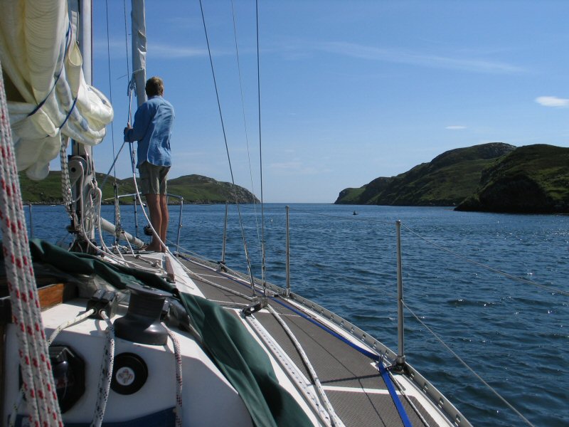 North Harbour is an interesting place sheltered from all sea and wind directions. A narrow (and shallow) entrance opens out into a circular pool 200m across, with a pier and safe anchorage for a small number of boats. It took us three attempts to anchor, the bottom is very soft mud, but once it had held and the engine was off we began to look around. We were surrounded on all sides by houses, each house facing the centre of the pool. It was an odd feeling, no peeing off the side of the boat here then. The teenage hang out was on the pier. The boy racers were driving fast dingys instead of Ford Fiesta's and would courteously wave to us as they went past.