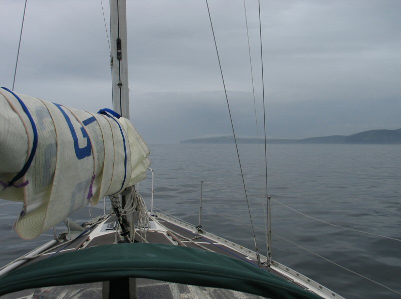 Friday 28 July 2006 A bit of a grey old morning. It was half expected after our long spell of sunshine but it still came as a bit of a shock. When I poked my head out of the companionway hatch this morning I had my face dusted with drizzle. Not too bothered by that but sadly there was still no wind. In a cowardly way this suited me but a little bit of wind would have been nice - I was in no mood for heavy weather for today we were rounding Cape Wrath.